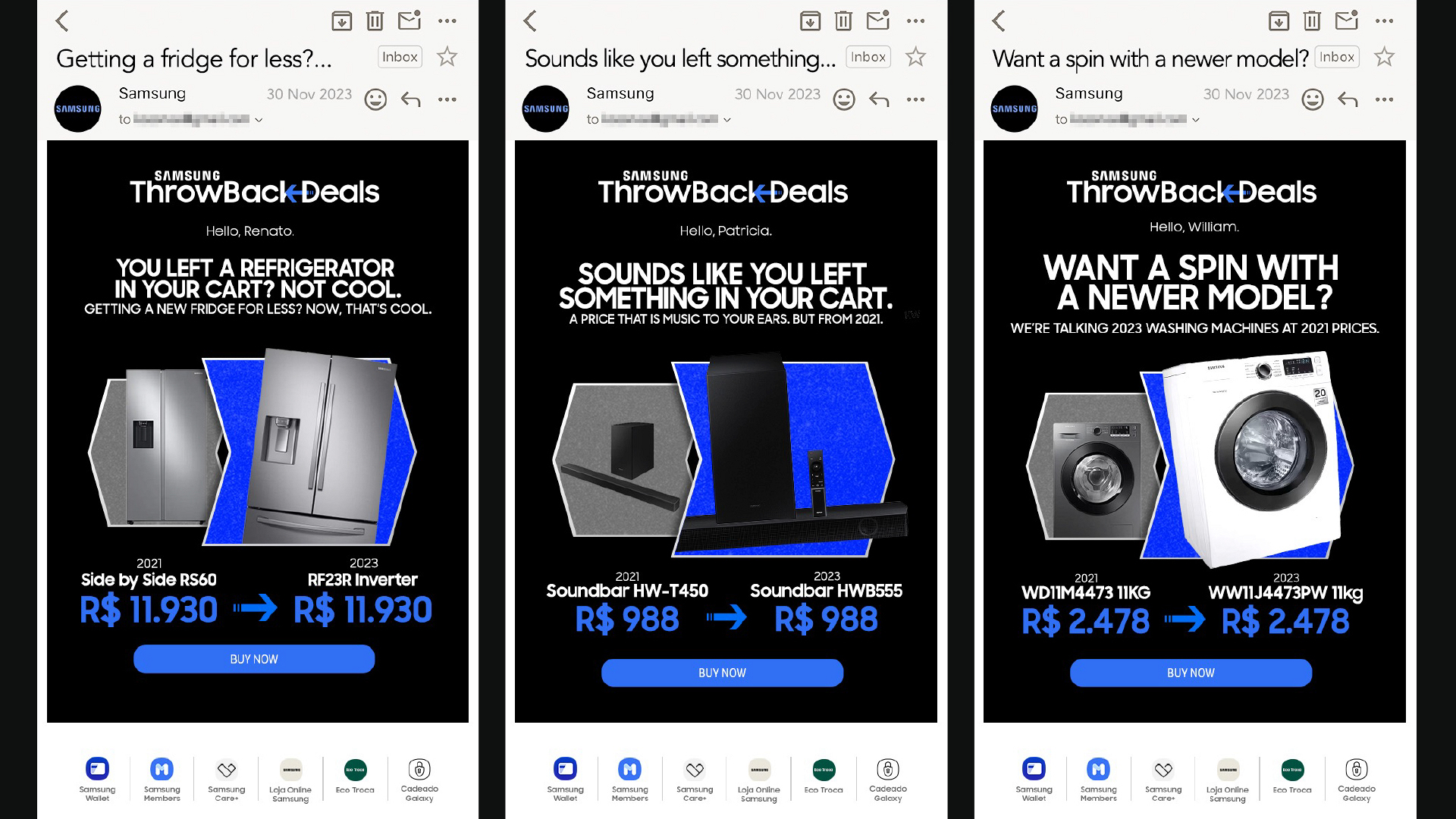 We offered retroactive deals to Samsung.com loyalty members who had left products in their carts the previous week and even as far back as 2021.